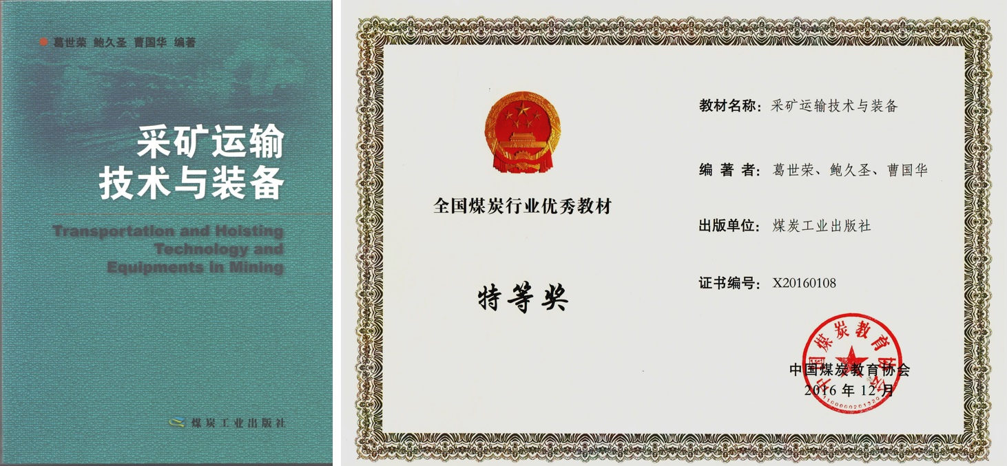 - ● 曾获全国煤炭行业优秀教材特等奖、江苏省高等学校微课教学竞赛二等奖、中国矿业大学优秀教学成果一等奖、中国矿业大学百佳本科教学教师奖等教学奖励6项(排名第一获奖5项)