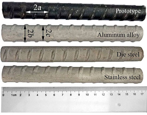 Prior to printing, the digital fifile of the prototype (PT) bolt is obtained by a 3D laser scanning system. Afterwards, mechanical tensile tests, infrared thermography (IRT) tests and digital image correlation (DIC) tests are carried out. The mechanical testing results indicate that the peak strength of the DS bolt is approximately twice that of the PT bolt. The IRT results show that the maximum temperature on the surface of all bolts except the AL bolt increases as the load increases, and the minimum temperature on the bolt surface is barely impacted by loading. DIC indicates a feasible relationship between the load and strain for the PT bolt, AL bolt and DS bolt. Overall, the AL bolt is not suitable for replicating the PT bolt, whereas the DS bolt and SS bolt are suitable choices. The conclusions established in this study provide new measures for future research regarding laboratory bolting tests and even engineering bolting trials.