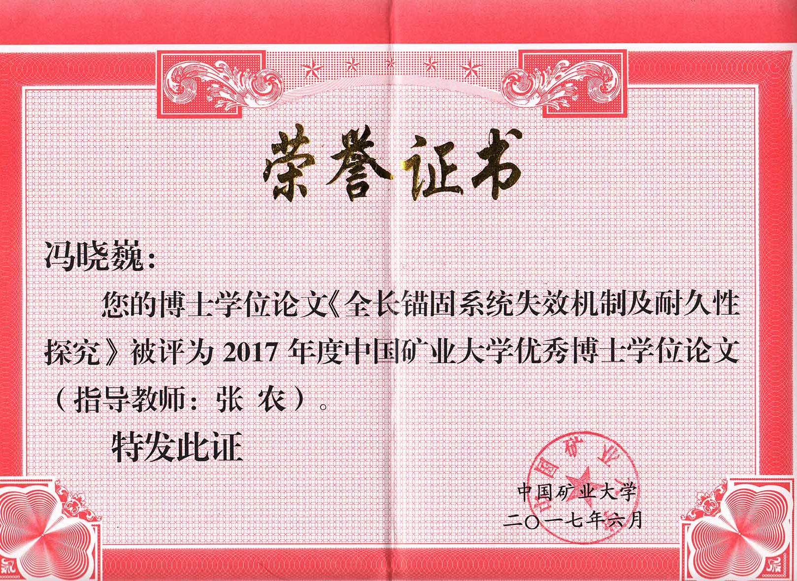 - Title of Achievement:2017年中国矿业大学校级优秀博士论文