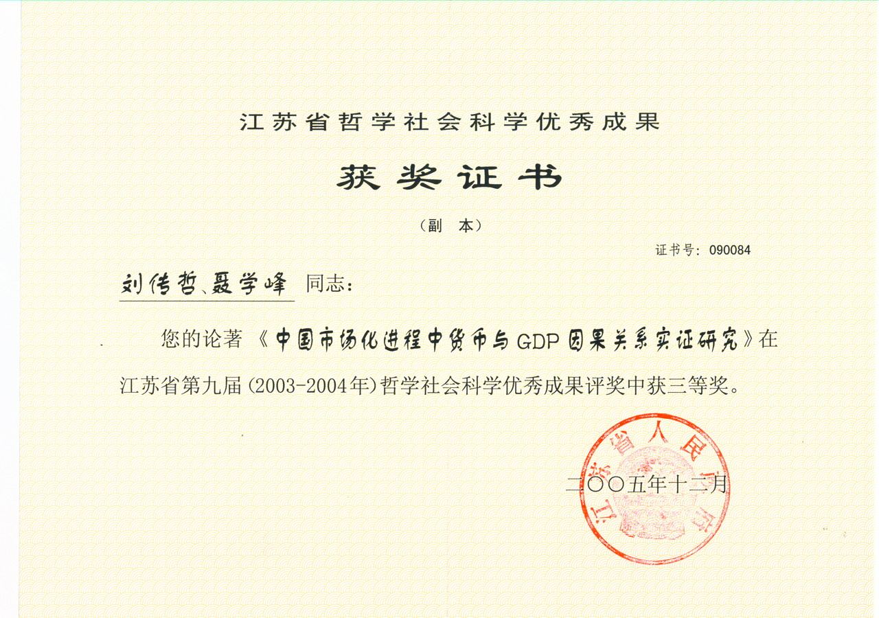 江苏省哲学社会科学优秀成果三等奖