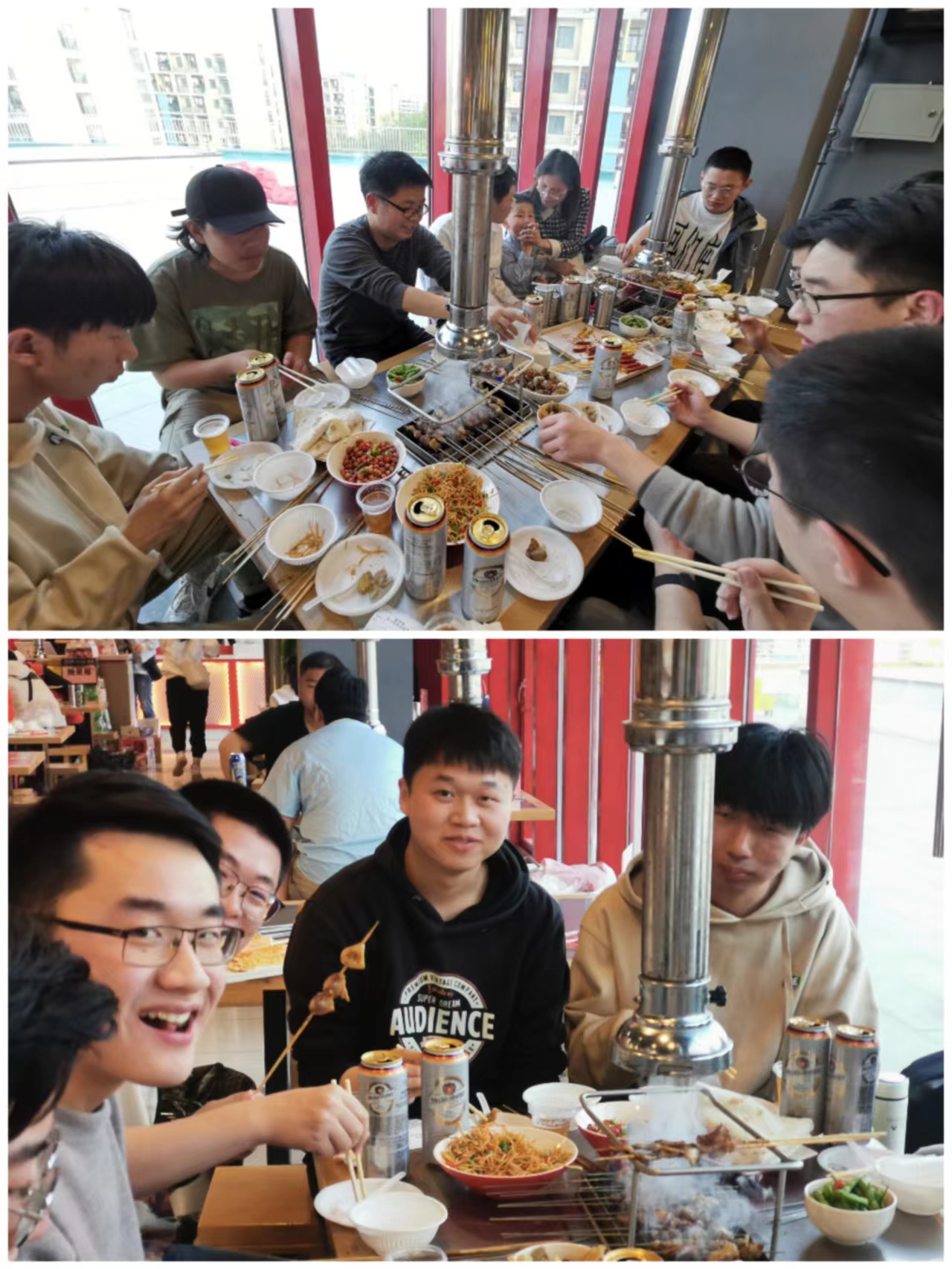 2023.4, 表面生长动力学课题讨论组每周三下午有个讨论交流时间,这次讨论会后的聚餐。疫情防控结束后,希望以后这类聚餐活动常态化!