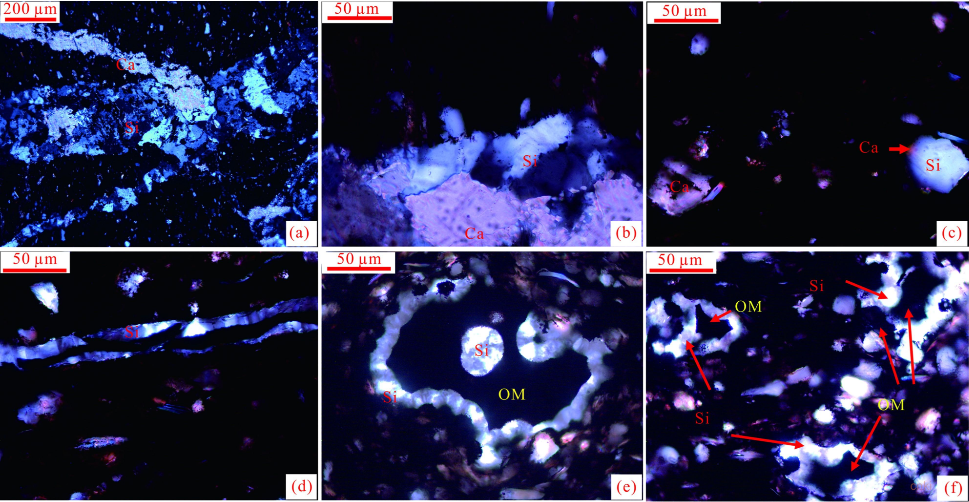摘要:四川盆地下古生界两套硅质页岩层系(寒武系底部页岩和奥陶系—志留系五峰组—龙马溪组页岩)是其重要的页岩气产层,五峰组—龙马溪组硅质含量与TOC及含气量呈正相关性,暗示硅质矿物对该地区页岩气的生成具有重要意义。但硅质来源复杂,且存在后期硅质流体的注入。因此,本文在总结前人的研究成果基础上,对四川盆地寒武系底部硅质岩系和五峰组—龙马溪组硅质岩系的硅质特征进行了详细的岩石学分析,揭示了3种硅质来源特征:(1)同沉积无机硅质流体;(2)生物硅;(3)后期无机硅质流体。其中寒武系底部以同沉积无机硅质流体和生物硅来源为主,同沉积硅质流体导致有机质快速石化埋藏,有机质内部结构及形态保存较好;五峰组—龙马溪组硅质来源以后期无机硅质流体和生物硅来源为主,有机质在保存过程中受硅质流体的影响很小,有机质腐泥化作用充分,内部结构和形态多数保存较差。该研究初步揭示了两套页岩层系的硅质发育岩石学特征,及其对有机质保存的影响,期望能为四川盆地两套页岩气储层差异性提供新的思路和基础地质数据。