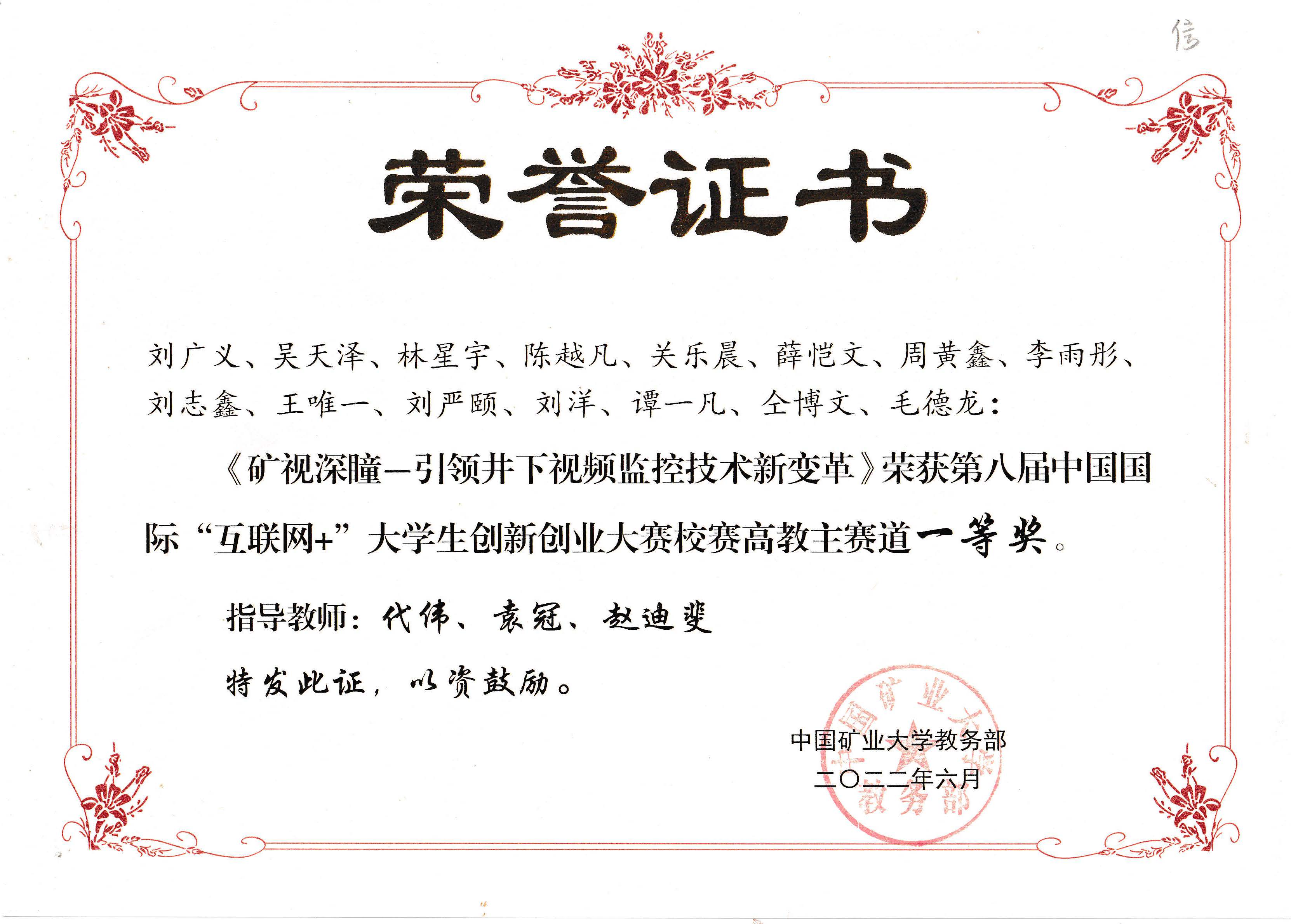 刘广义、周黄鑫、刘严颐等获第八届“互联网+”大学生创新创业大赛校赛一等奖(与代伟教授,赵迪斐教授联合指导)