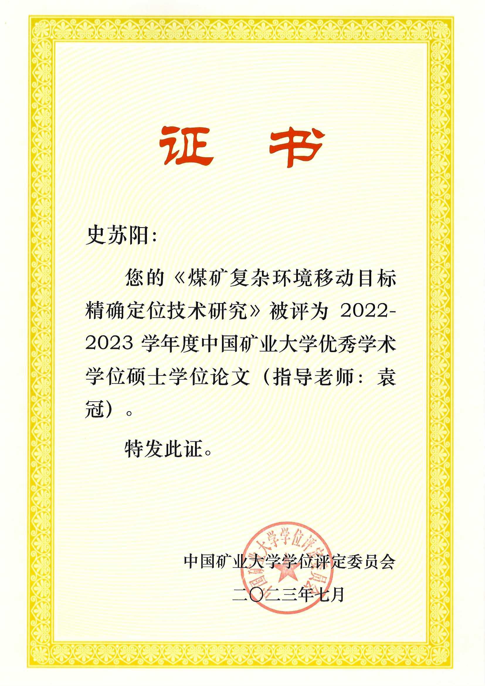2021级硕士研究生史苏阳的学位论文获校级优秀学术硕士学位论文奖励