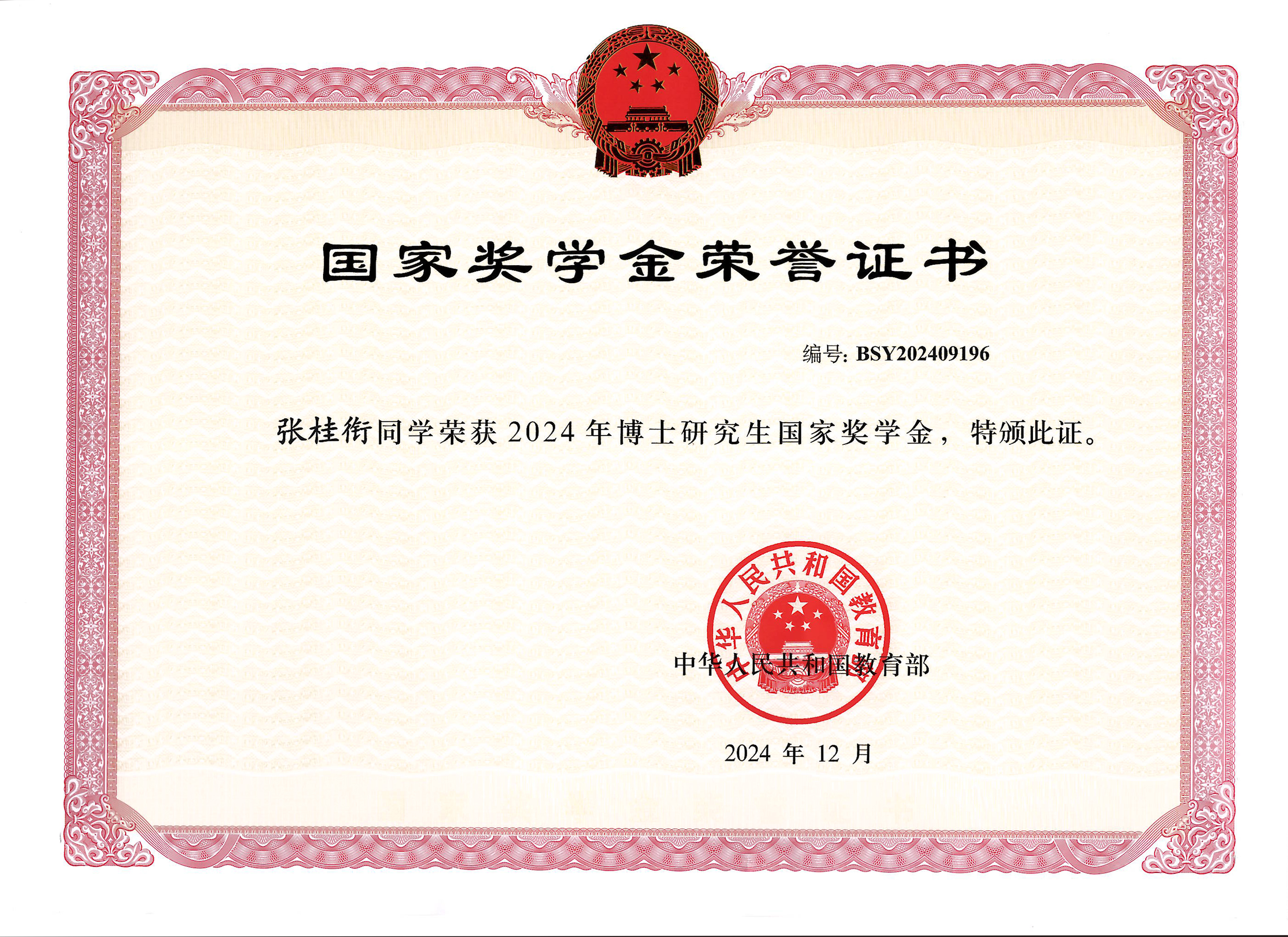 张桂衔获2024年博士研究生国家奖学金(2023级博士生)