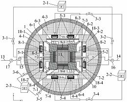 专利说明:本发明公开了一种煤系岩石相似材料试样成型与加载一体化装置及方法,属于煤系气开发模拟试验技术研发领域。以圆筒形合金钢体为反力架,伺服油源向液压枕充液使其膨胀变形产生三轴推力,经承载板、压柱、活塞杆作用于试样,在六面开放腔体中心实现煤系相似材料试样成型与真三轴密封加载。承载板与钢铸填充件之间安装位移计,监测加卸载中试样变形量。X轴压柱、活塞杆中心设注气孔,可向试样中注入CH4、CO2等进行吸附、驱替及渗流试验,模拟研究煤系气开发过程。其结构简单、操作方便、材料成本低、密封加载方式安全可靠,特别适用于煤系气储层